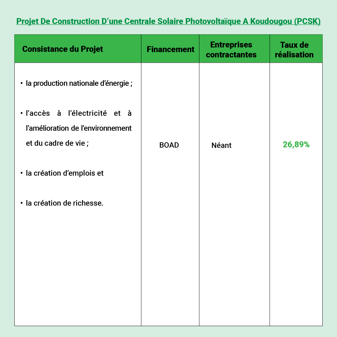 Projet De Construction D’une Centrale Solaire Photovoltaïque à Koudougou (PCSK)
