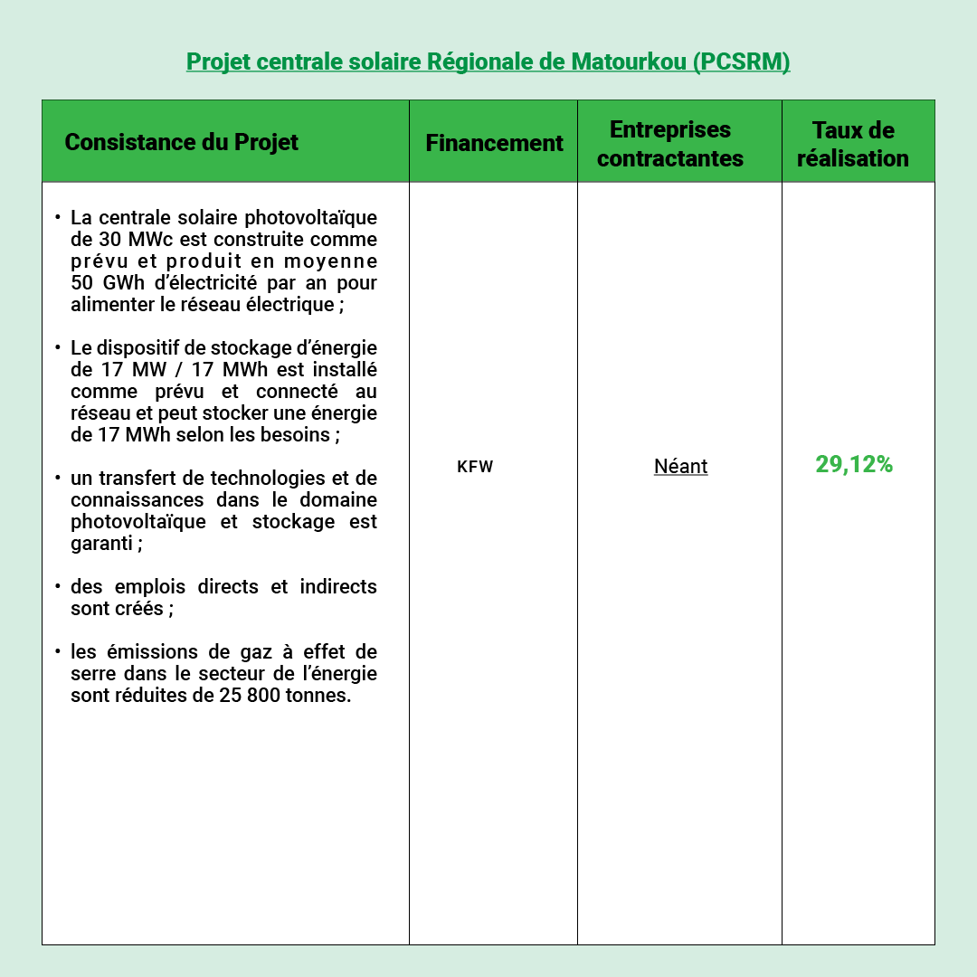 Projet centrale solaire Régionale de Matourkou (PCSRM)