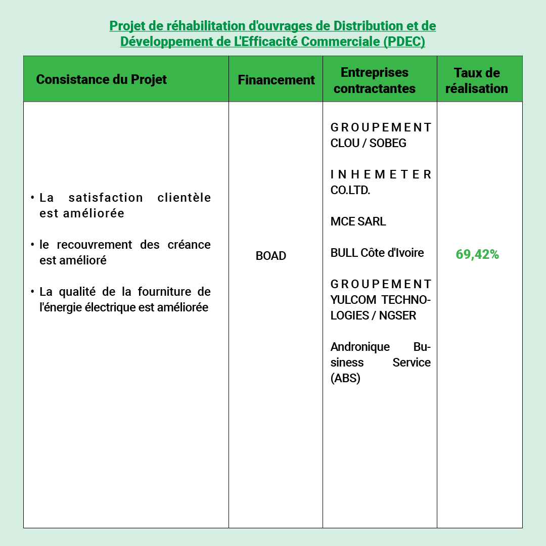 Projet de réhabilitation d'ouvrages de Distribution Et de Développement de L'Efficacité Commerciale (PDEC)