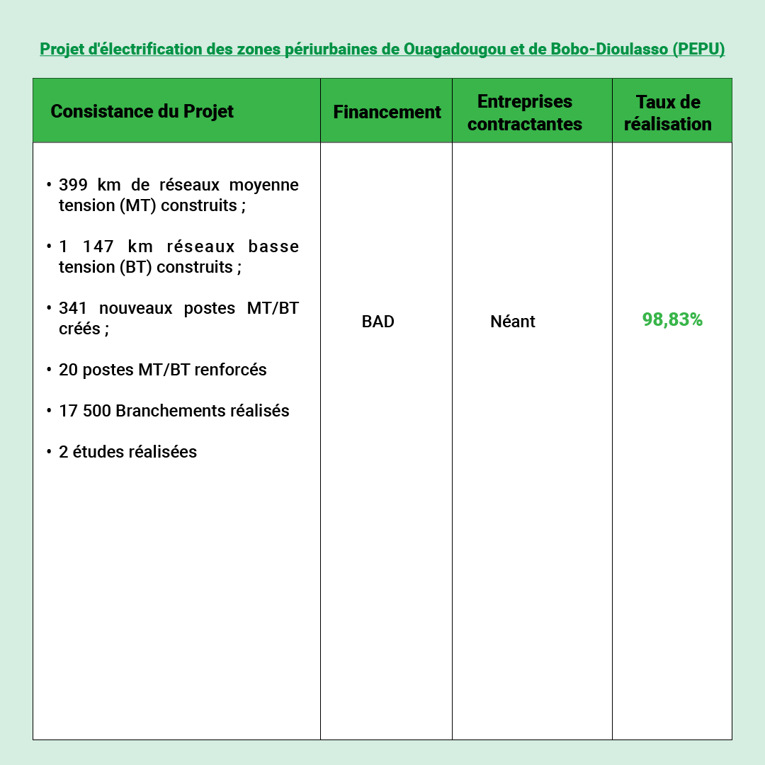 Projet d'électrification des zones périurbaines de Ouagadougou et de Bobo-Dioulasso (PEPU)