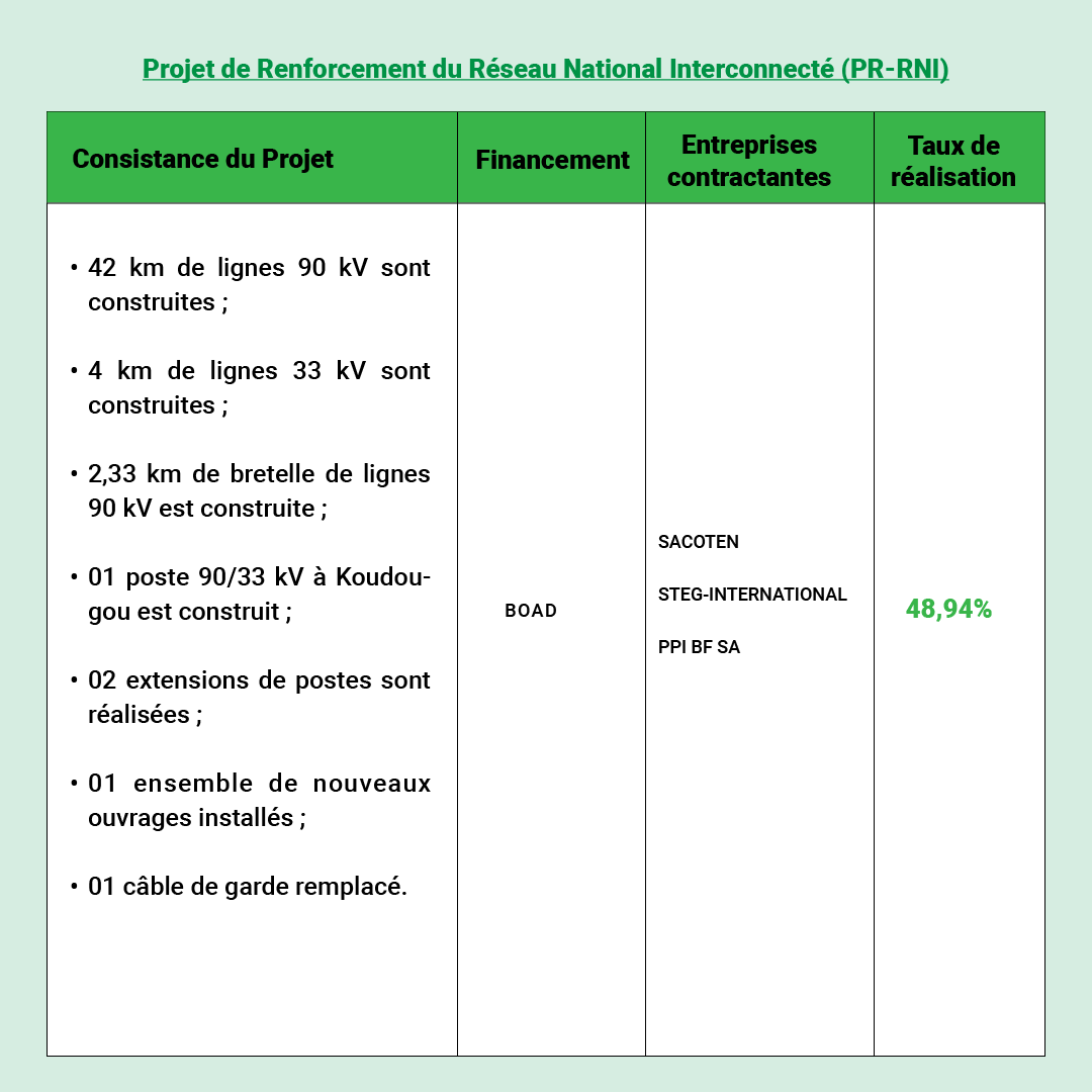 Projet de Renforcement du Réseau National Interconnecté (PR-RNI)