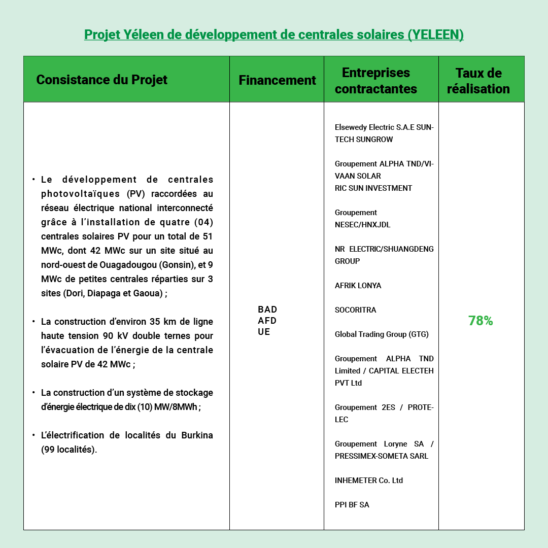Projet Yéleen de développement de centrales solaires (YELEEN)